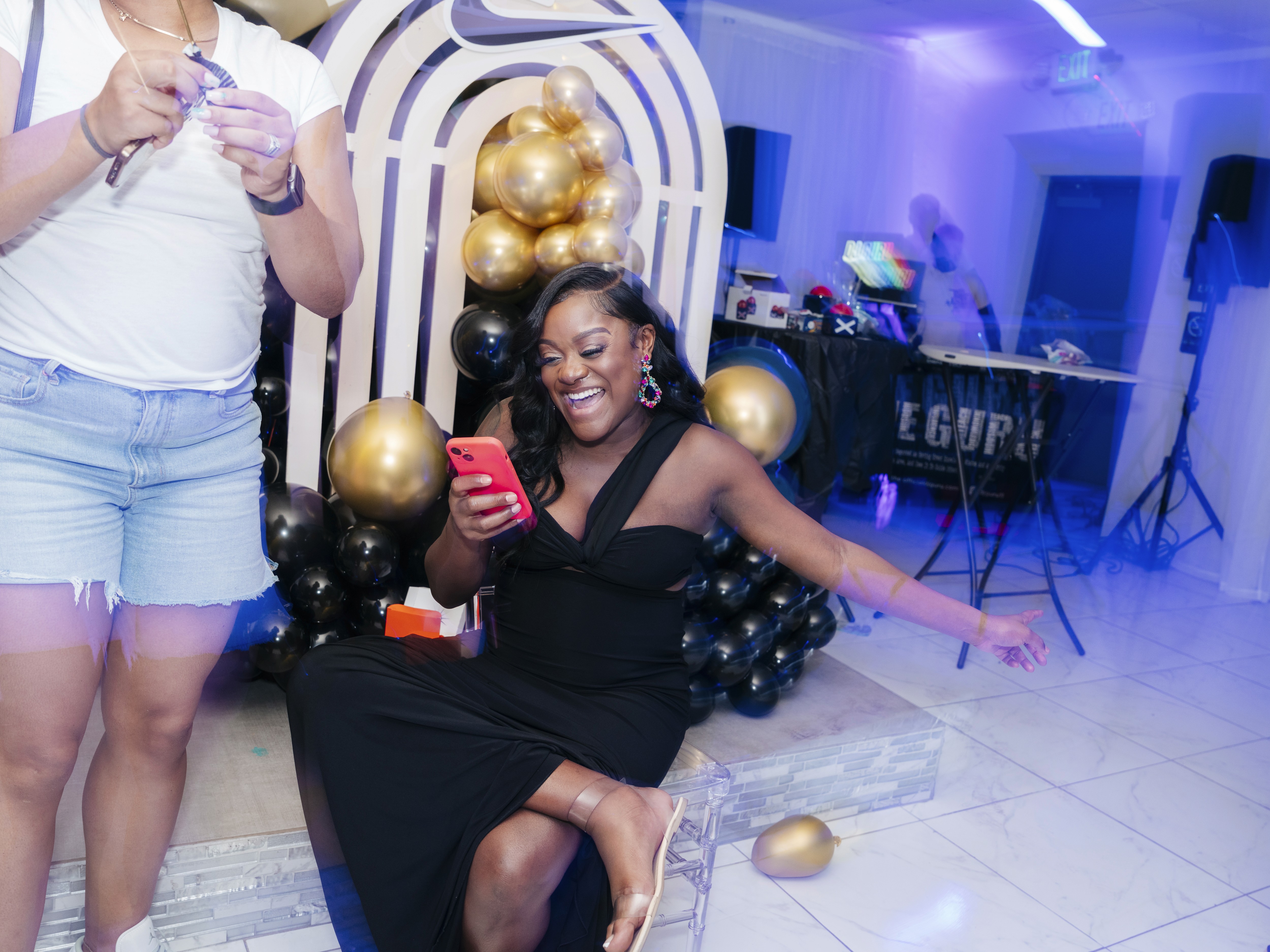 Fashion photoshoot with a woman posing in a dress